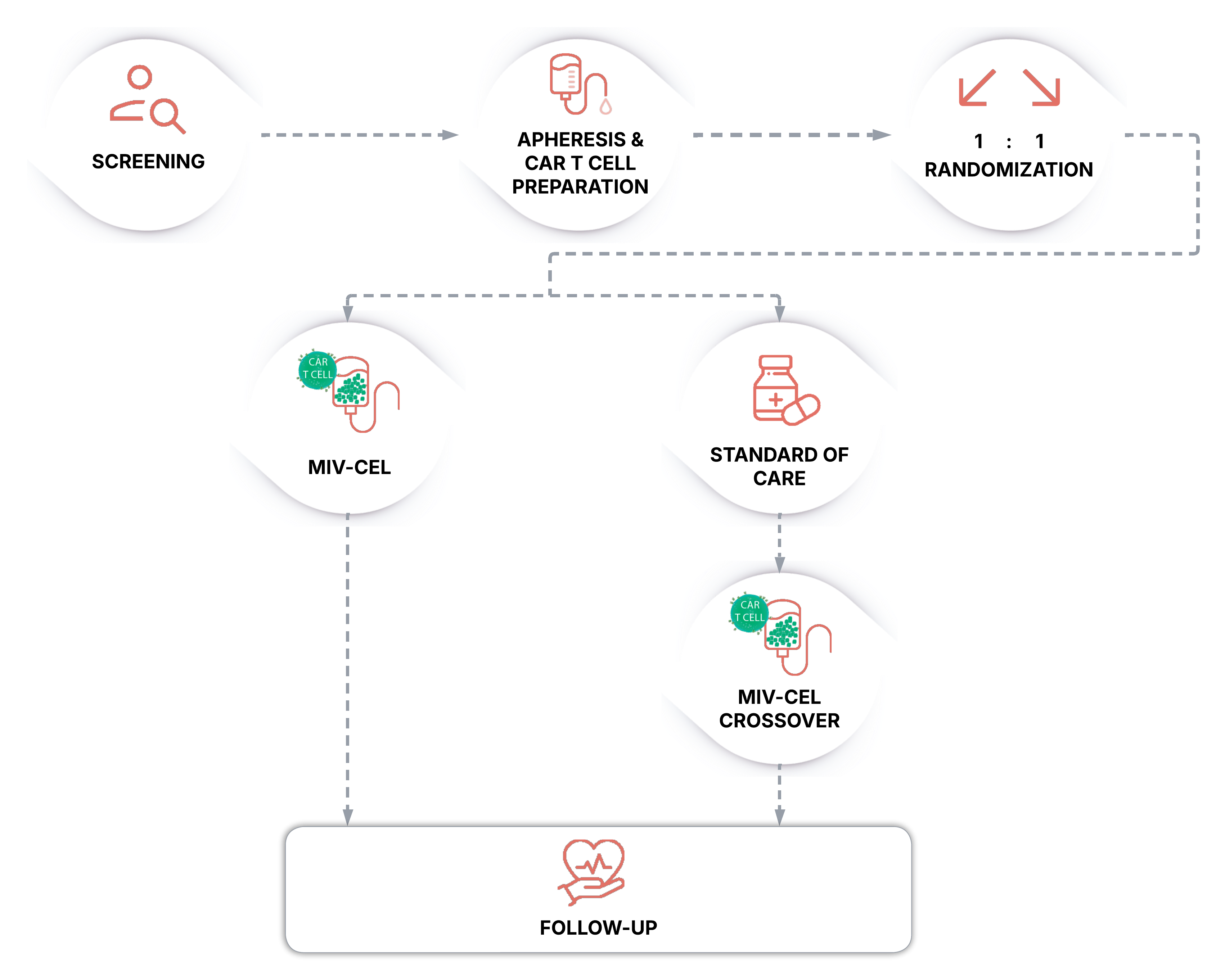 The trial will compare miv-cel, an investigational CAR T-cell therapy, to standard of care treatmenta